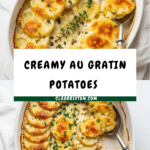 Keywords: Au Gratin Potatoes, Potato gratin, Gruyere cheese, creamy potato bake, French side dish, comfort food