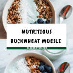 A nutritious and vibrant Buckwheat Muesli served with homemade Spirulina-infused Coconut Yogurt. This recipe combines soaked buckwheat groats, seeds, nuts, and dried fruit into a wholesome muesli mix paired with a creamy probiotic-rich coconut and cashew yogurt blended with spirulina for an energizing start to your day.