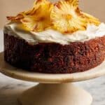 - Decorate: Place the cooled cake on a plate or cake stand. Pile the cream cheese icing on top. Arrange pineapple flowers over the icing if desired for an elegant finish.