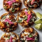 These Cauliflower Black Bean Tostadas are a vibrant, flavorful dish combining crispy tortillas with tender roasted cauliflower, creamy refried black beans, tangy pickled onions, and melty queso. Perfect for a satisfying vegetarian meal that’s both crunchy and comforting.
