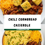 Keywords: chili cornbread casserole, chili casserole, beef chili, baked cornbread, comfort food, one dish meal