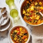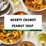This hearty Chunky Peanut Soup combines rich flavors of peanut butter, tomatoes, and warming spices with nutritious vegetables like potatoes, butternut squash, and cabbage. It is a warming, satisfying, and protein-packed vegetarian soup perfect for a comforting meal.