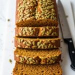 Store the pumpkin bread in an airtight container at room temperature for up to 3 days. For longer storage, wrap tightly and refrigerate for up to a week or freeze for up to 3 months. Reheat slices gently in a toaster or microwave before serving.