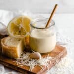 - Add ingredients: Add all of the ingredients—mayonnaise, Parmesan cheese, garlic, lemon juice, Dijon mustard, kosher salt, and anchovies—into a large mason jar or mixing container.