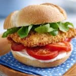 These crisp chicken burgers with lemon mayo are a fresh and satisfying twist on a classic favorite. Tender chicken breasts are coated in golden, toasted breadcrumbs and paired with a zesty lemon mayonnaise for a bright burst of flavor. Perfect for a quick weeknight dinner or a weekend cookout.