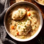 - Serve: Ladle the creamy chicken soup with dumplings into bowls and garnish with extra thyme, flaky salt, and black pepper to taste. Serve hot and enjoy the comforting warmth of this classic dish.