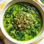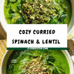 This curried spinach and lentil soup is a comforting bowl of warmth packed with vibrant flavors and nutritious ingredients. With a creamy texture and a zesty cashew chutney topping, it’s perfect for a wholesome lunch or dinner.