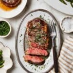- Serve: Serve the steaks with a pat of unsalted butter on top and garnish with finely chopped chives or your choice of fresh herbs for added flavor and presentation.