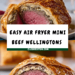 Keywords: beef wellington, mini beef wellington, air fryer recipe, puff pastry beef, mushroom pâté, appetizer, elegant meat dish