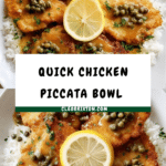 This Express Chicken Piccata Bowl is a bright and buttery dish that comes together quickly on a busy weeknight. Tender chicken pieces are coated, seared, and served over rice with a tangy lemon-caper sauce. It’s hearty, fresh, and full of vibrant flavors.