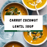 This fragrant carrot, coconut, and lentil soup is a vibrant and comforting dish full of warming spices like turmeric, cumin, and garam masala. Creamy coconut milk and tender red lentils blend perfectly with sweet carrots and fresh herbs to create a smooth, nourishing soup that’s perfect for a cozy meal.