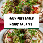 Keywords: Falafel, Herby falafel, Chickpeas, Middle Eastern, Vegetarian, Vegan, Freezable falafel, Fried falafel, Easy falafel recipe
