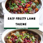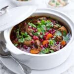 Keywords: lamb tagine, North African lamb stew, fruity tagine, ras el hanout lamb, lamb with apricots, pomegranate lamb dish