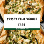 Keywords: filo tart, spring vegetable tart, butter bean tart, vegetarian tart, crispy filo, light lunch, easy vegetarian