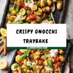This vibrant and easy gnocchi traybake combines crispy roasted gnocchi with tender courgette, sweet baby plum tomatoes, and flavorful artichokes, all baked to perfection. Topped with a zesty lemon ricotta and fresh basil, this dish offers a delightful blend of textures and bright Mediterranean flavors, perfect for a fuss-free weeknight dinner or a cozy meal for two.