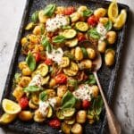 This gnocchi traybake is a vibrant and satisfying dish, perfect for a quick weeknight dinner. Packed with tender courgettes, juicy baby plum tomatoes, and tangy artichokes, it’s finished with a creamy lemony ricotta that adds a fresh twist. Simple to prepare and bursting with flavor, it’s sure to become a favorite.