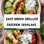 Keywords: Greek grilled chicken, chicken souvlaki, tzatziki sauce, Greek salad, Mediterranean chicken, healthy grilled chicken salad