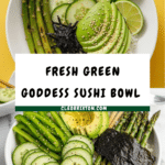 Keywords: sushi bowl, green goddess sushi bowl, avocado sushi bowl, asparagus sushi, vegetarian sushi bowl, easy sushi bowl, sushi rice bowl