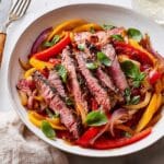 Store any leftover peperonata in an airtight container in the refrigerator for up to 3 days. Reheat gently on the stove or in the microwave before serving. It’s best to keep steak and peperonata separate if you plan to store leftovers, to maintain the steak’s texture.