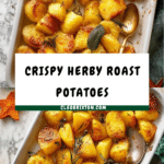 Keywords: herby roast potatoes, crispy roast potatoes, roast potatoes with garlic and herbs, British side dish, oven roasted potatoes