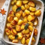 Keywords: herby roast potatoes, crispy roast potatoes, roast potatoes with garlic and herbs, British side dish, oven roasted potatoes