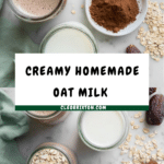 Homemade oat milk is a creamy, dairy-free alternative that’s easy to make with simple ingredients. Naturally sweetened with dates and optionally flavored with vanilla or cacao, it’s perfect for your morning coffee or smoothies.