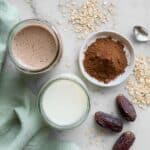 Keywords: oat milk, homemade oat milk, vegan milk, dairy-free milk, plant-based milk, chocolate oat milk, raw cacao oat milk, healthy beverage