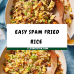 A flavorful and easy-to-make Korean-style fried rice dish featuring crispy Spam, sautéed vegetables, and fluffy eggs, all tossed with soy and sesame oils for a deliciously satisfying meal.