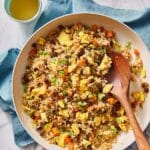 - Use leftover rice that’s been cooled in the fridge to prevent the dish from becoming mushy.