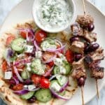 Keywords: Lamb souvlaki, grilled lamb skewers, Mediterranean lamb, lemon dill lamb, Greek souvlaki recipe, pitta bread lamb