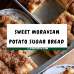 Moravian Potato Sugar Bread is a traditional sweet bread featuring mashed potato in the dough for a moist, tender crumb, topped with a cinnamon and brown sugar crust. This comforting and slightly sweet bread is perfect for breakfast or an afternoon snack, offering a delightful balance of soft interior and crunchy topping.