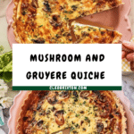 Keywords: mushroom quiche, gruyere quiche, vegetarian quiche, savory pie, brunch recipe, easy quiche