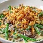 This old-school green bean casserole is a comforting classic that’s perfect for family dinners and holiday gatherings. Made with fresh or frozen green beans, a creamy mushroom sauce, and crispy fried onions, it offers a delightful mix of textures and flavors.