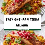 This one-pan tikka salmon with jewelled rice is a vibrant and aromatic dish that’s perfect for a flavorful weeknight dinner. Combining tender salmon with fragrant spices, sweet apricots, and fresh pomegranate seeds makes for a deliciously balanced meal all cooked in a single pan.