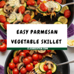 Keywords: Parmesan vegetable skillet, sautéed vegetables, zucchini recipe, vegetarian skillet, easy vegetable side dish, garlic vegetable skillet