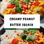 A rich and flavorful Peanut Butter Squash Curry combining creamy peanut butter, warming spices, and tender butternut squash simmered in coconut milk, perfect for a comforting vegetarian meal served with rice.