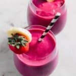 Keywords: beet smoothie, healthy smoothie, strawberry smoothie, roasted beet, pink smoothie, breakfast smoothie, fruit smoothie, vegetarian smoothie