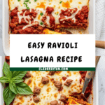 This ravioli lasagna is a delicious twist on classic lasagna, layering tender ravioli with a rich meat sauce and creamy ricotta. It’s comforting, easy to assemble, and perfect for family dinners or special occasions.