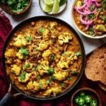 This roasted cauliflower and chickpea coconut curry is a comforting and flavorful dish that combines tender roasted vegetables with a creamy, spiced sauce. It’s perfect for a cozy dinner and pairs wonderfully with rice or flatbreads.