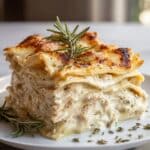 Keywords: Rosemary chicken lasagna, chicken lasagna recipe, creamy béchamel lasagna, no-boil noodles lasagna, Italian chicken casserole