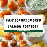 Deliciously simple Scandinavian-inspired smoked salmon potatoes featuring tender boiled new potatoes wrapped in smoky salmon, served with a tangy mustard and dill sauce and creamy soured cream for dipping. This elegant appetizer or light meal combines fresh herbs, citrus, and smooth textures for a light and tasty dish perfect for entertaining or a casual meal.