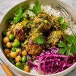These spiced turkey meatballs are a flavorful and aromatic dish featuring tender turkey thigh mince blended with garlic, lemon zest, and a mix of warm spices like cumin, sumac, and allspice. Perfect for a healthy and versatile meal, these meatballs can be cooked and served in various dishes, including curries and wraps.