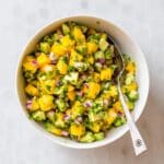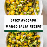 Keywords: Spicy Avocado Mango Salsa, fresh salsa recipe, gluten free salsa, mango salsa, avocado salsa, no-cook salsa, Mexican salsa, healthy salsa