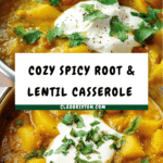 This Spicy Root & Lentil Casserole is a warm, comforting dish packed with hearty vegetables and flavorful spices. Perfect for a cozy dinner, it combines tender root vegetables and red lentils in a fragrant curry sauce.