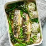 This sticky soy sea bass and greens traybake is an easy, flavorful weeknight dinner that combines tender fish with vibrant green vegetables and silky rice noodles. The sweet and savory glaze creates a deliciously sticky finish that’s sure to impress without any fuss.