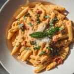 This Sun-Dried Tomato Cottage Cheese pasta recipe offers a creamy, flavorful sauce combining tangy sun-dried tomatoes and rich cottage cheese, blended with garlic and Parmesan for a smooth texture. Tossed with perfectly cooked pasta and fresh basil, this dish is an easy, delicious meal perfect for a quick weeknight dinner or a light lunch.