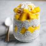This Tropical Chia Parfait is a delicious and healthy no-cook dessert or breakfast option featuring creamy coconut chia pudding layered with fresh mango and sweet shredded coconut. It’s naturally sweetened with dates and infused with vanilla for a smooth, tropical flavor that’s perfect for a refreshing treat or nutritious start to your day.