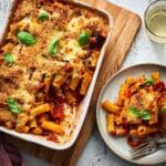 Store any leftovers in an airtight container in the fridge for up to 3 days. Reheat in the oven or microwave until piping hot. This pasta bake also freezes well for up to three months—defrost thoroughly before reheating if possible.